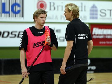 – Turbulent? Hur menar du då? Låter som fler felaktiga spekulationer. Jag fick till uppgift av klubben, som huvudtränare tillsammans med sportchefen, att vara med och tillsätta en ny ledarstab runt SSL-laget och herr elitgruppen. Vissa delar är desamma som förr, som lagledaren Kjell-Åke Grandin och hjälptränaren Kari Karke medan andra delar är helt nya såsom Kenny Andersson, Mikael Lemker och Uffe Jansson för att nämna några. I och med herr elitgruppen finns det många runt oss och ett större intresse i Täby. Vi är kanske i överkant många. Men hellre ett flertal människor som vill vara delaktiga på något sätt och ge av sig själva till laget än att vara för få. Det handlar om att ha högt i tak och vara tydlig med vem som gör vad.